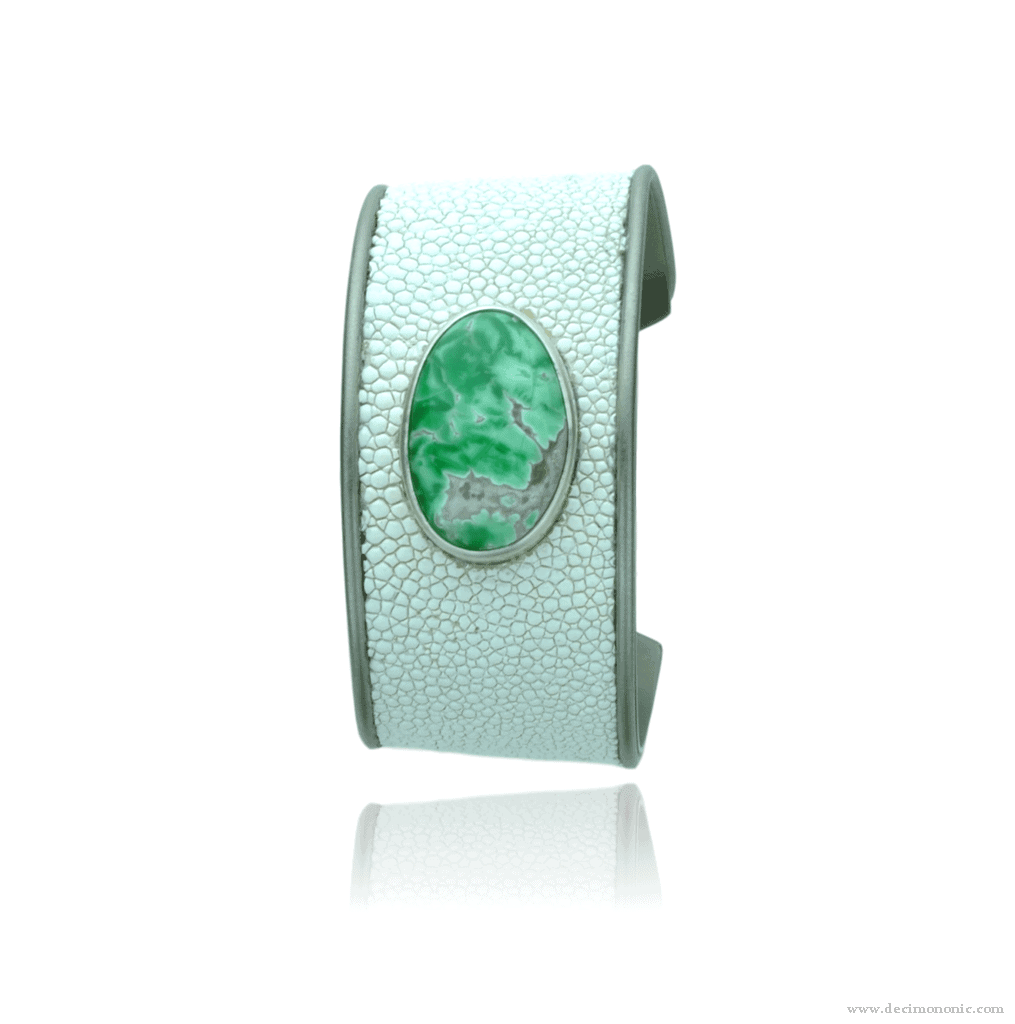 Materials.- Titanium with matt finish, variscite. In addition, sterling silver and galuchat for the bracelet.