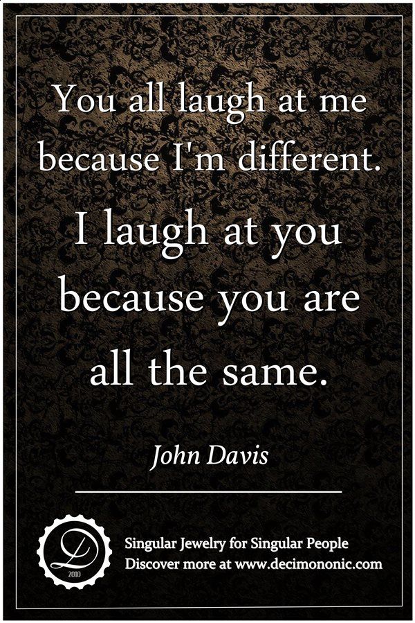John David said ‘you laugh at me because I’m different; I laugh at you because you are all the same’. Food for thought.