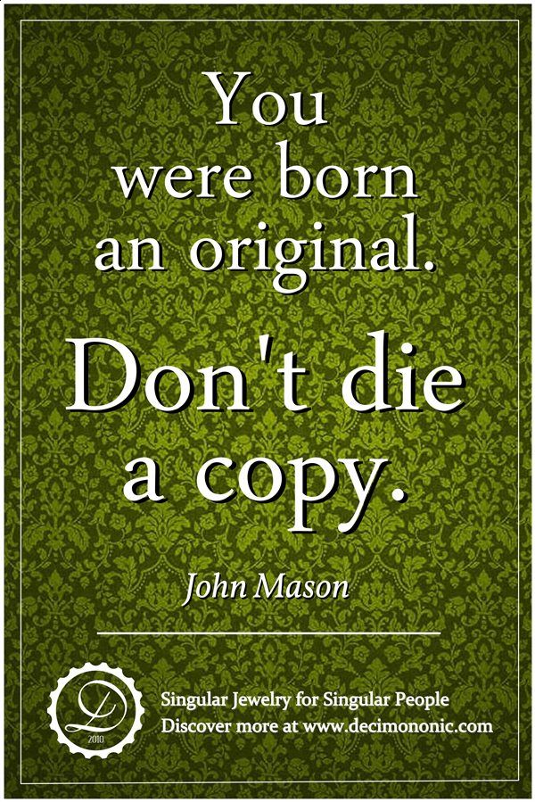 As John Mason stated… ‘you were born an original. Don’t die a copy’.