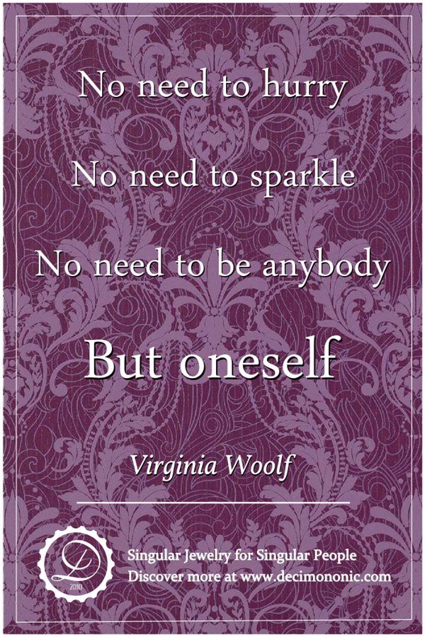 Splendid quote by Virginia Woolf: ‘No need to hurry, no need to sparkle, no need to be anybody but oneself’.
