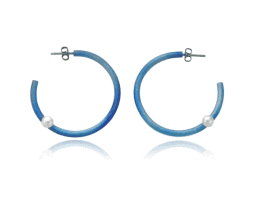 Blue titanium hoop earrings with one pearl – Nautilus Collection by Decimononic