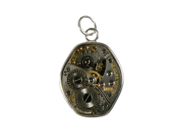 Belonging to our Tempus Fugit collection, the Gamma Charm is a versatile Steampunk-inspired sterling silver pendant that includes a silver-coloured rhombic vintage watch movement. It can be weared alone or combined with other pieces, like our Reasón Necklace.