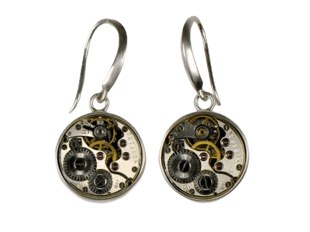 Belonging to our Tempus Fugit Collection, the Alpha Earrings are Steampunk-inspired sterling silver earrings that include silver-coloured round vintage watch movements. These earrings show a simple yet elegant design and guarantee versatility for any occasion, both daily use and significant dates.