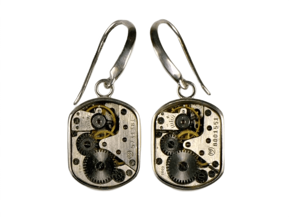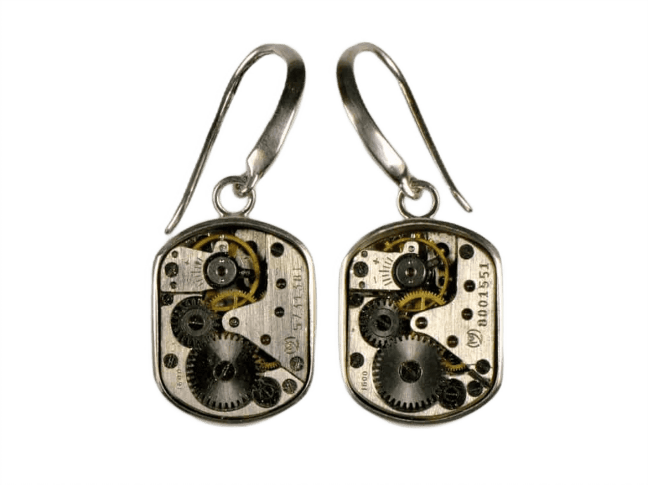 Belonging to our Tempus Fugit Collection, the Beta Earrings are Steampunk-inspired sterling silver earrings that include silver-coloured rectangular vintage watch movements. These earrings show a simple yet elegant design and guarantee versatility for any occasion, both daily use and significant dates.