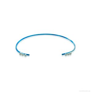 Handmade blue-colored titanium torque with six freshwater cultured pearls.