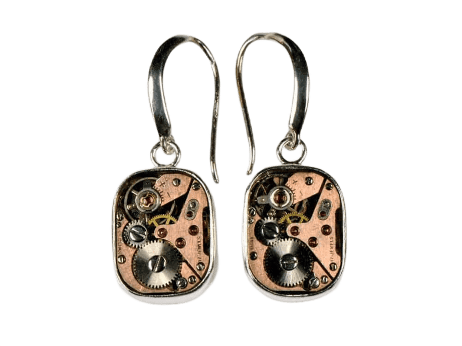It’s time to shine! The Supra Earrings are Steampunk-inspired sterling silver earrings that include two extraordinary ‘rose-gold’ vintage watch movements. Buy them at your own risk, you can make people envious! Do not be surprised when you are asked once and again about these astonishing earrings…