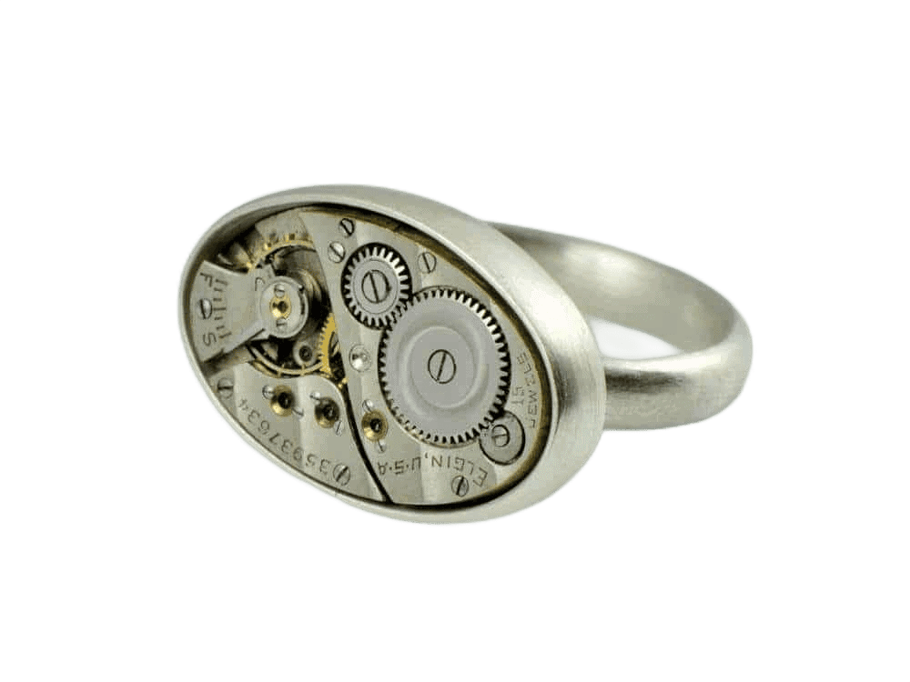 Handmade sterling silver ring with Elgin U.S.A. watch movement (15 jewels).