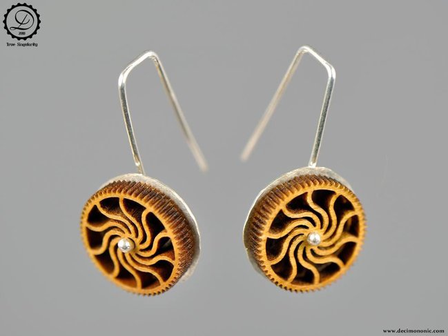Timber means past and future: warm, resistant and renewable, it has earned a place among the most noble materials. We are most pleased to put within your reach these confortable small-sized earrings with a Steampunk touch.